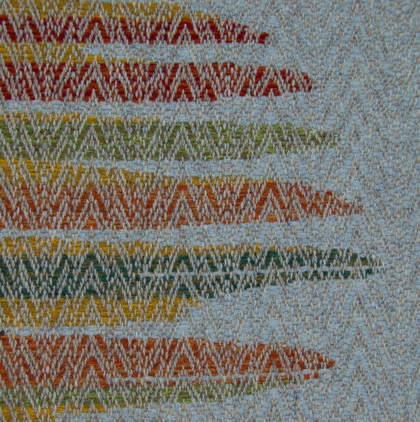 Colours may vary with different monitors. Small handwoven samples of fabric and yarn are available on request to show texture and colour.